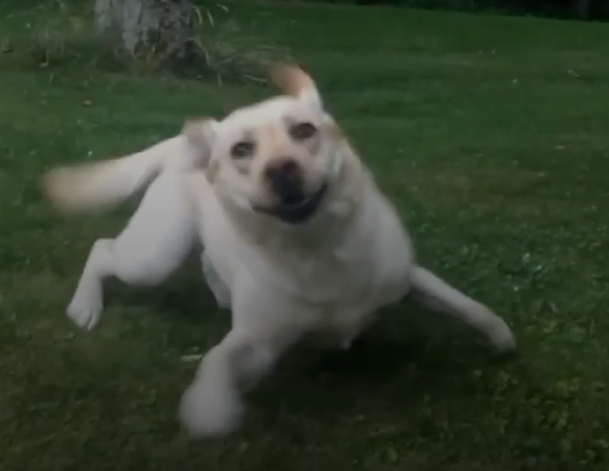 A whirlwind of zoomies — this dog runs and spins with pure, unfiltered joy, a reminder of the happiness animals bring.